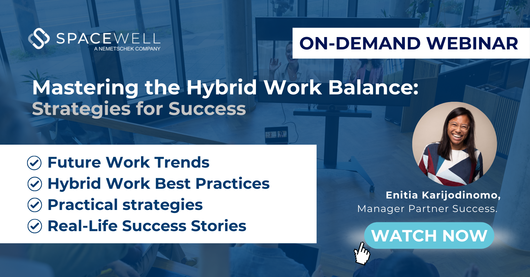 Join Enitia Karijodinomo, Manager Partner Success at Spacewell, during this insightful webinar on balancing hybrid work. We cover future work trends, productivity strategies, and how smart building solutions can help create a thriving hybrid workplace. Here’s a quick look at the agenda: