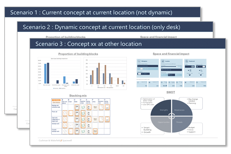 Our experts in workplace transformation provide consultancy on a tactical & strategic level. They diagnose the workplace, analyse the data and present remediation initiatives for a smart, healthy and dynamic workplace